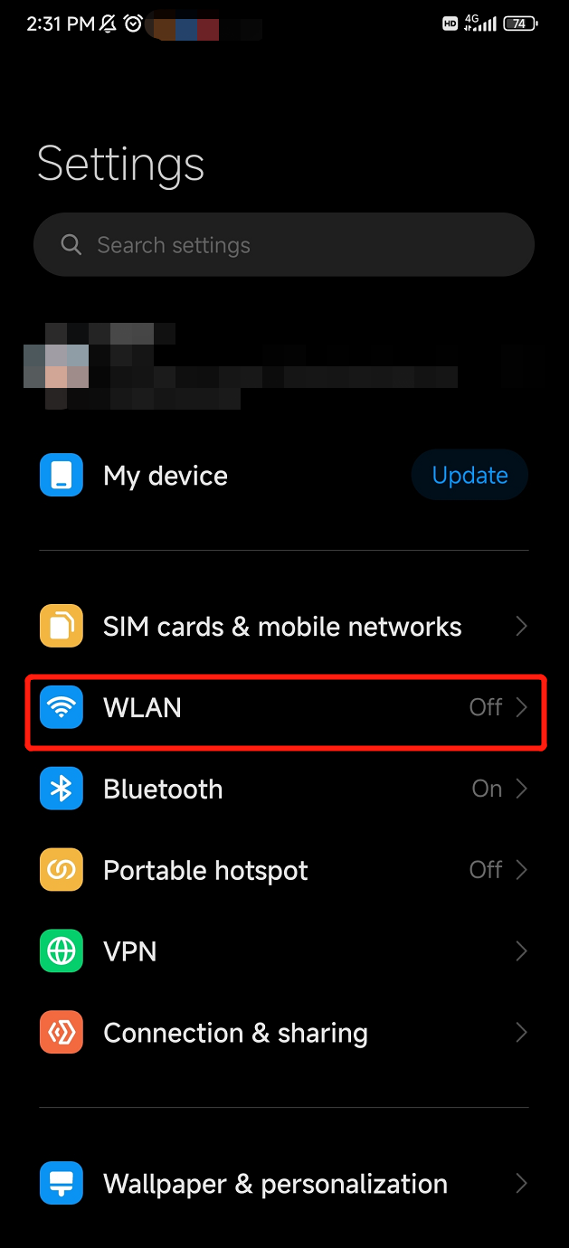 Open your Android Settings, Click on WLAN.