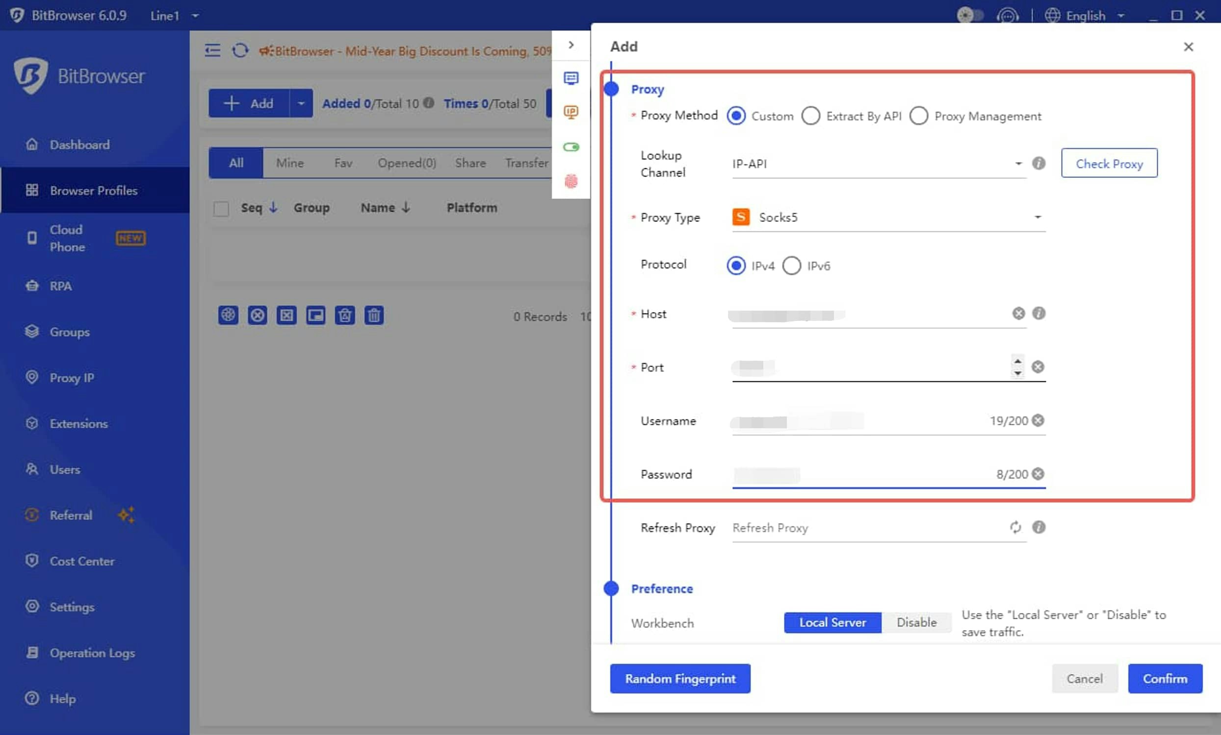 - Proxy Type: Specify the proxy type (HTTP or Socks5).